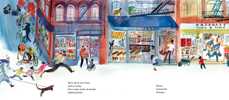 Above and below: Pages from “One Small Spark: A Tikkun Olam Story” written by Ruth Spiro and illustrated by Victoria Tentler-Krylov. (Used with permission of Penguin/Dial Books for Young Readers)