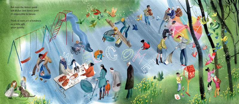 Parents will want not just to read “One Small Spark” to their children, but to look at and discuss the pictures with them. The book is an excellent way to teach a difficult concept in a simple and graphic way.